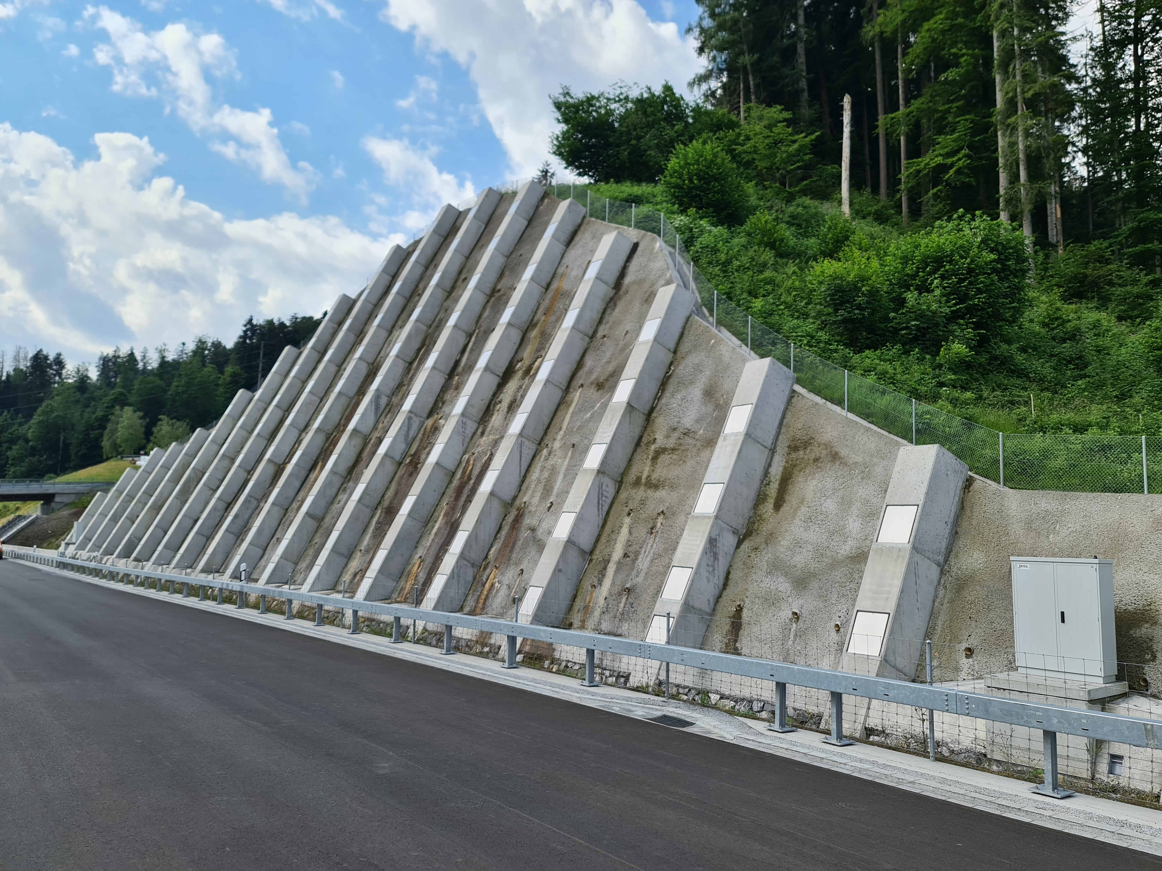 Nach einer Bauzeit von 4 Jahren wurde die Umfahrung Wattwil am 15. September 2022 eröffnet. Zur Sicherung der neuen Umfahrungsstrasse im steilen Hang unterhalb der Rickenstrasse wurden 6 grosse Ankerwände mit rund 700 Anker errichtet. Im Auftrag des Tiefbauamtes Kanton St. Gallen rüstete die Firma Stahlton die Hälfte dieser Anker mit Messdosen aus, um die Kräfte in der Ankerwand fortan beobachten zu können.