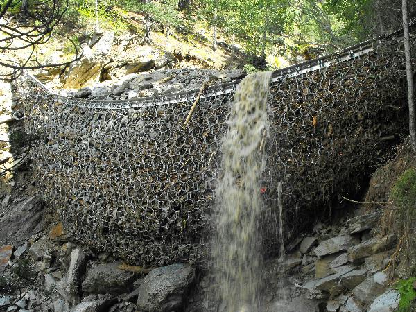 Umwelt- und mantagefreundliche Murgangbarrieren aus hochfestem Stahldraht, die mehrfach in Test- und Feldversuchen erprobt wurden. Durch die Drainagewirkung des Netzes erhöht sich das Rückhaltevolumen der Schutzlösung erheblich.