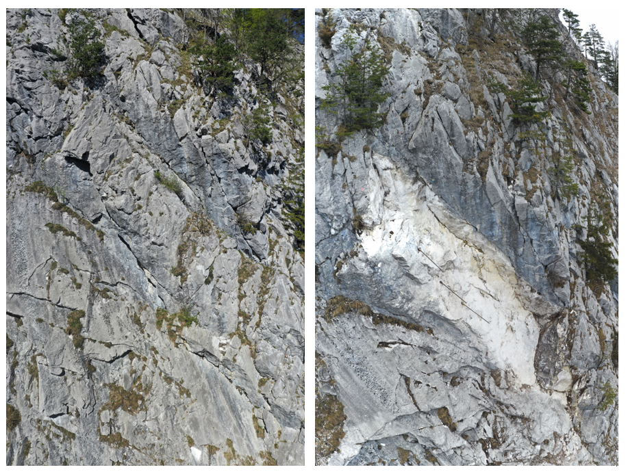 Mit flächendeckender Überwachung entdeckten wir ein instabiles Felspaket, das sich vom Fels gelöst hatte. Dank vertiefter Analyse und gezielter Sprengung konnte die Gefahr rechtzeitig beseitigt und die wichtige Infrastruktur im Tal geschützt werden.