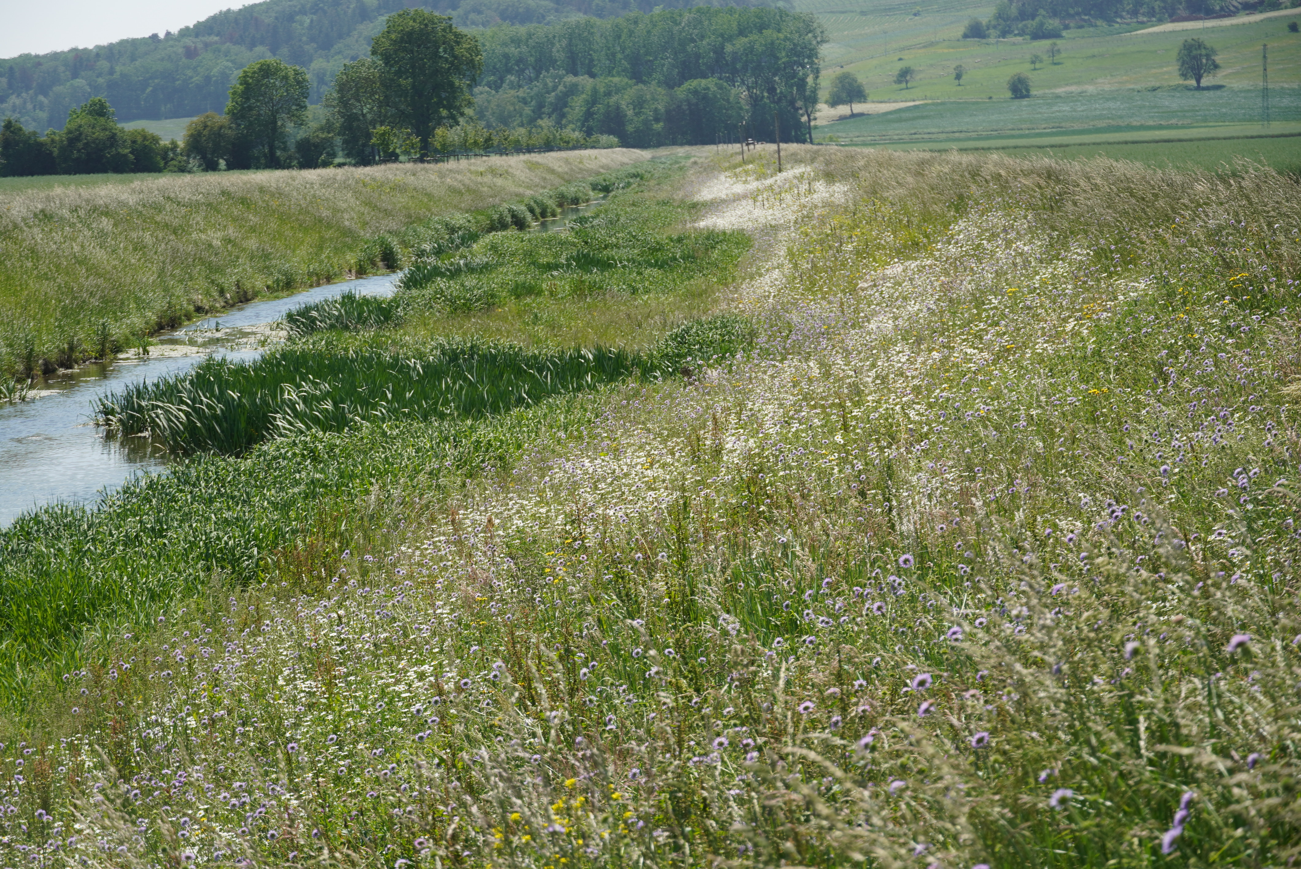 Mitentscheidend für einen langfristigen Erosionsschutz ist die Wahl des richtigen Saatguts. Der Einsatz von Saatgut aus lokalen Blumenwiesen (autochthones Saatgut) fördert die regionale Artenvielfalt sowie die genetische Vielfalt (lokale Ökotypen) und ist nicht nur bei Naturschutzprojekten seit längerem ein anerkanntes Verfahren. Denn die aus regionalem Saatgut stammenden Pflanzenarten sind an die lokalen Standortbedingungen angepasst, was den langfristigen Ansaaterfolg erhöht. Durch die verschiedensten Wurzelsysteme der bis zu 50 angesäten Pflanzenarten wird auch eine zuverlässige Bodenstabilität langfristig gewährleistet. Das eingesetzte Holzwollevlies besteht zu 100% aus Schweizer Holz und enthält keinerlei Pestizide oder Kunststoffe. Nachdem es nach wenigen Jahren auf natürliche Weise abgebaut wird, übernimmt anschliessend die etablierte Pflanzengesellschaft die Funktion des Erosionsschutzes auf nachhaltige Weise.
